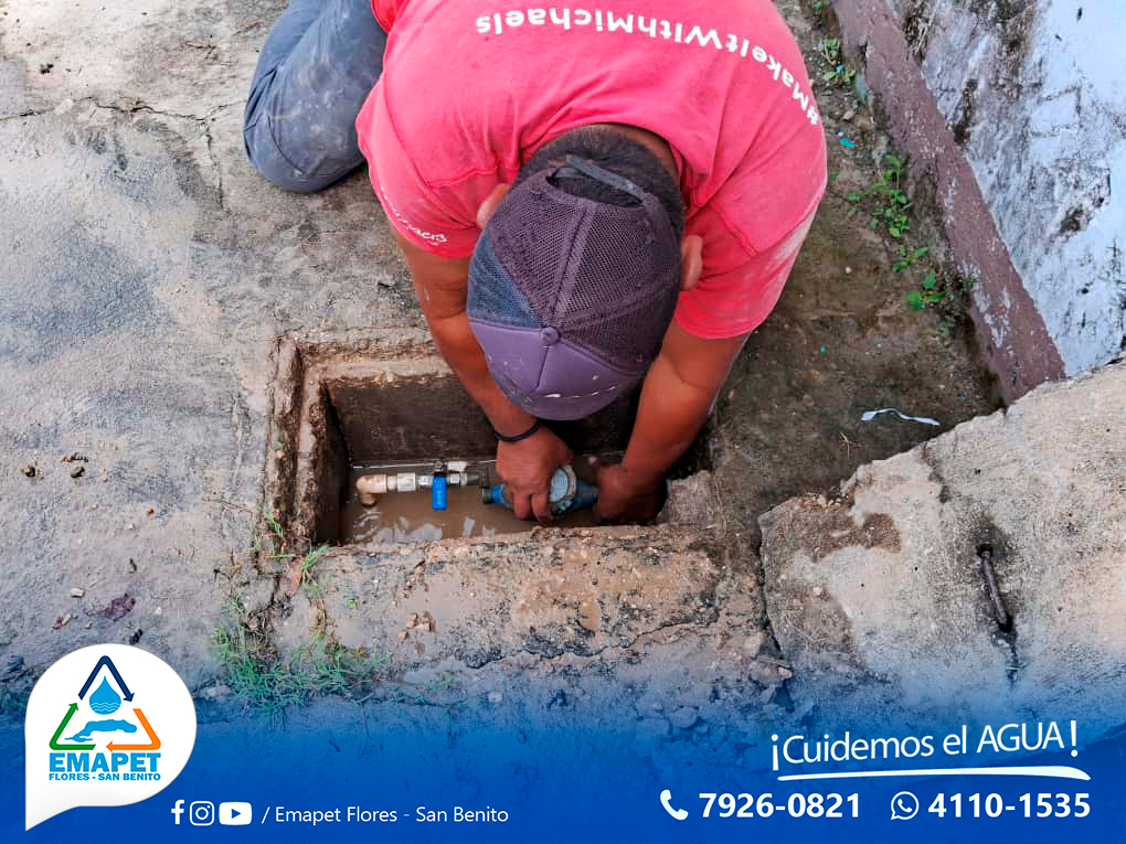 Reparación de fuga en medidor, barrio El Trebol, San Benito, Petén. Recuerda que...